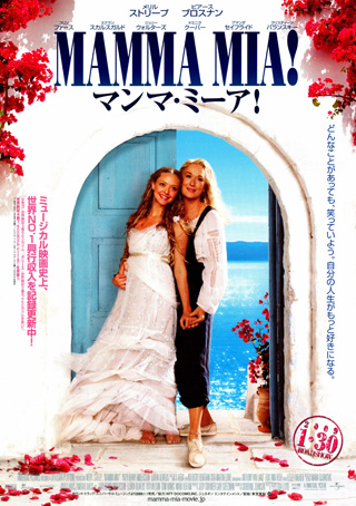 ABBAのヒット曲で構成されたブロードウェイ・ミュージカルをオスカー女優メリル・ストリープ主演で映画化。エーゲ海に浮かぶギリシャの小島で、20歳のソフィは結婚式を間近に控えていた。母子家庭で育ったソフィの願いは父親とバージンロードを歩くこと。母親ドナの日記を内緒で読んだソフィは、父親の可能性がある母の昔の恋人3人に招待状を出すのだが……。監督は舞台版も手掛けているフィリダ・ロイド。共演に5代目007のピアース・ブロスナン、コリン・ファースほか。